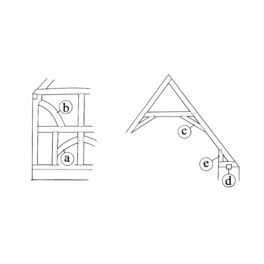 a) Kerb principal b) Crown strut c) Queen strut d) Interrupted collar e) Princess strut g) Downward & ogee brace