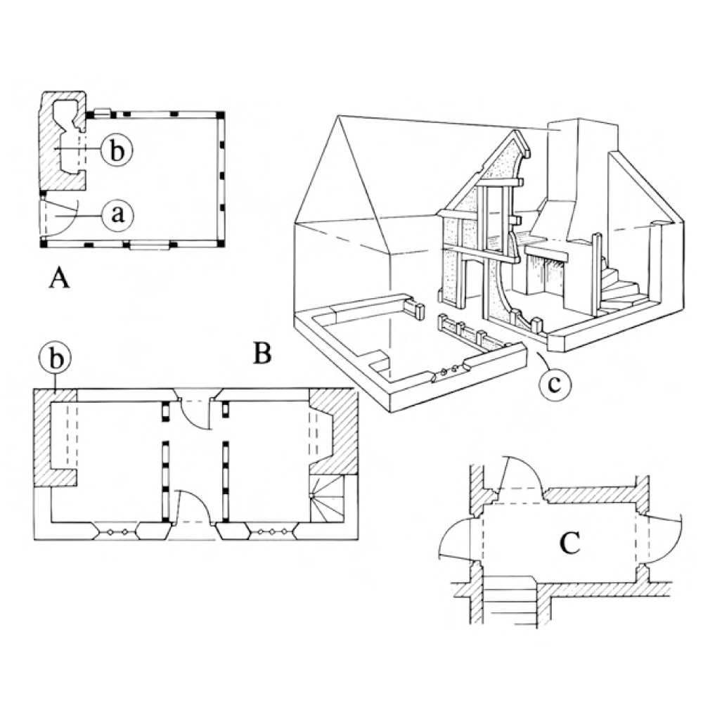 a) Gable entry b*) Gable chimney c*) Cross passage