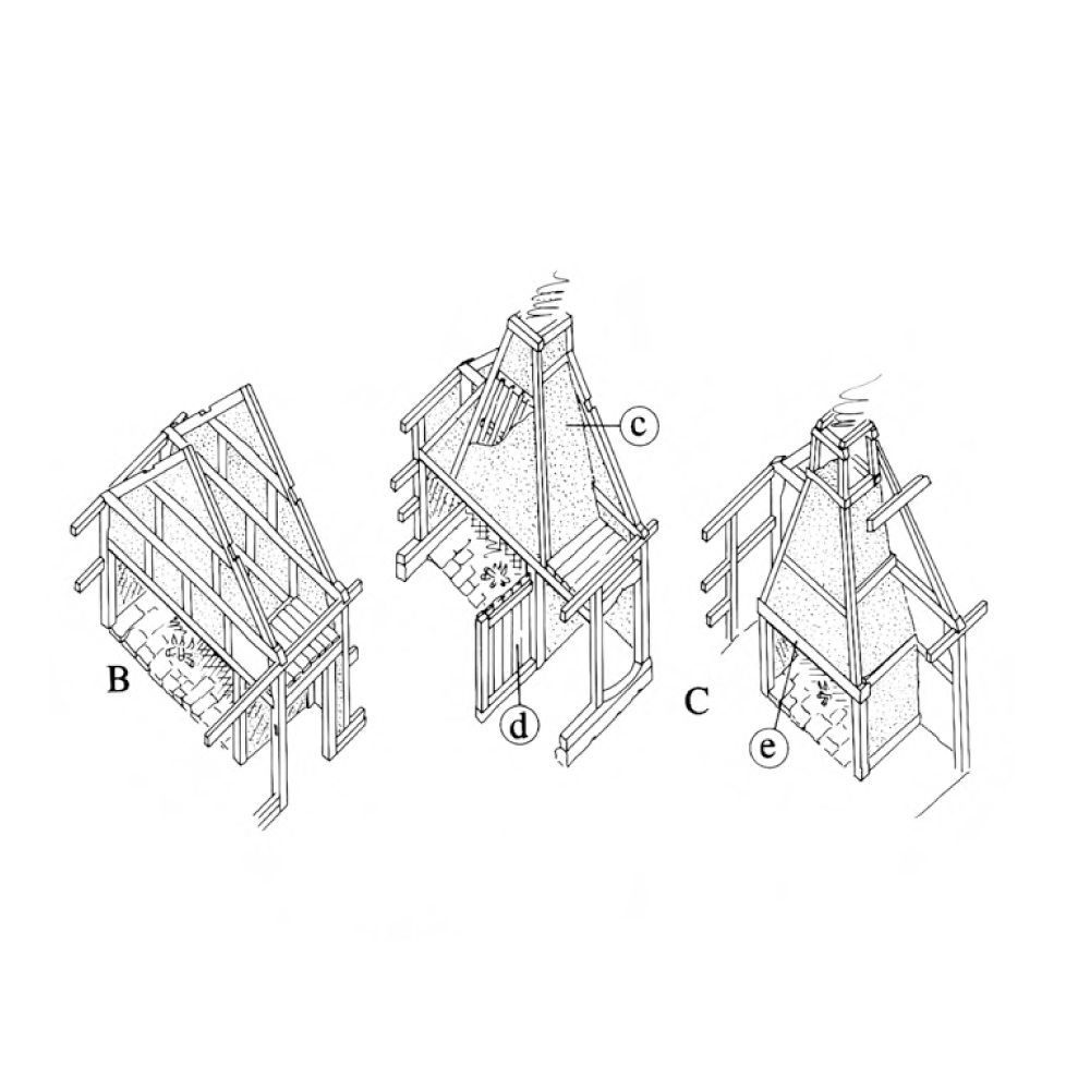 c) Smoke hood d) Spere e) Bressumer (Lintel)